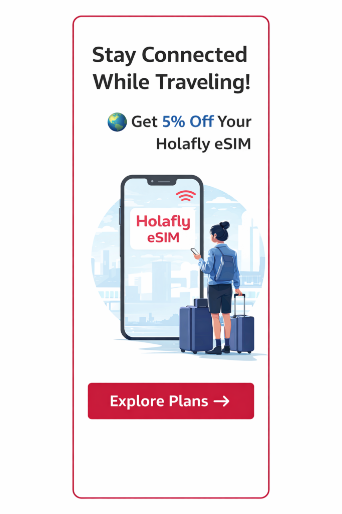 Click below to discover how Holafly’s eSIM can keep you connected from the moment you land—no local SIM card, no roaming surprises!